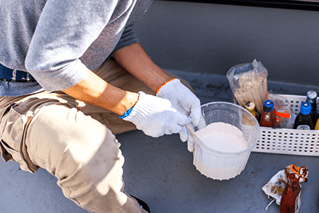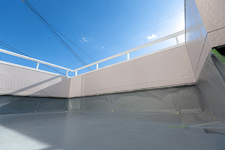 防水塗装とは、ベランダや屋根の防水機能を高めるための塗装です。防水性の高い塗料を使い、厚い層になるように塗装していきます。