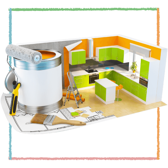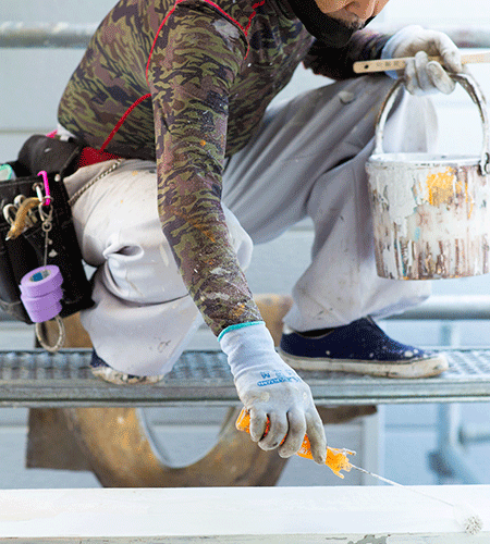 塗料を木部や鉄などの材料に塗り付けて塗膜を作り、表面を保護したり美観を保つために行う工事。